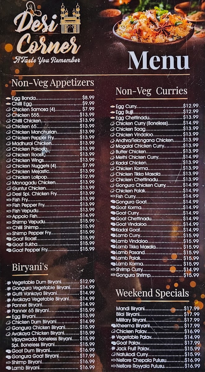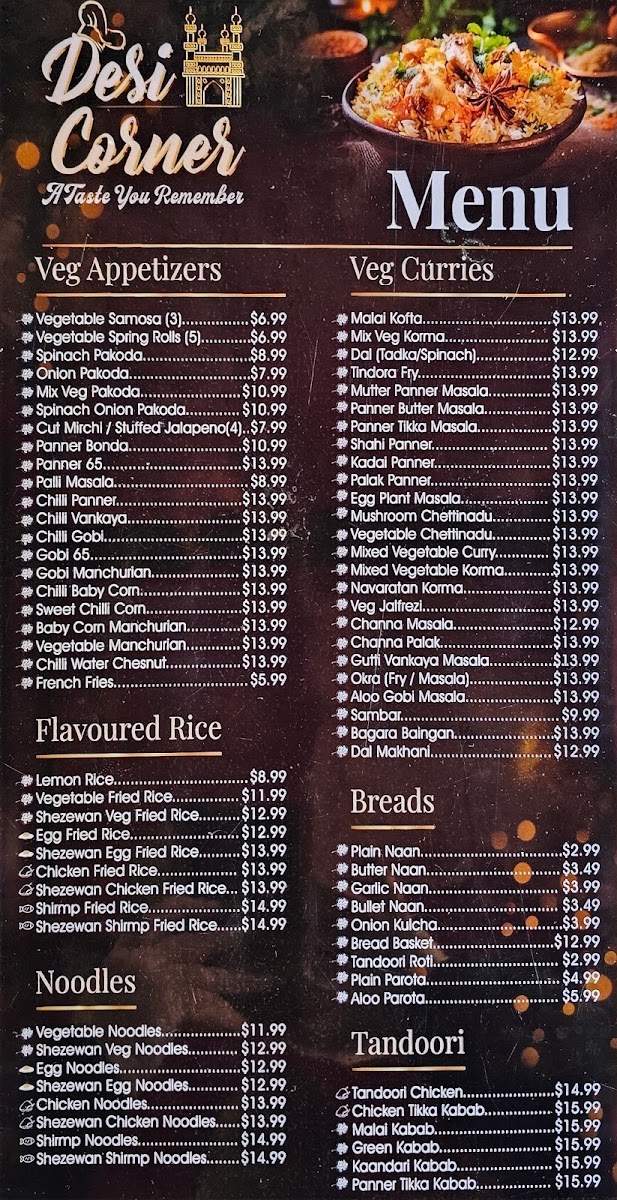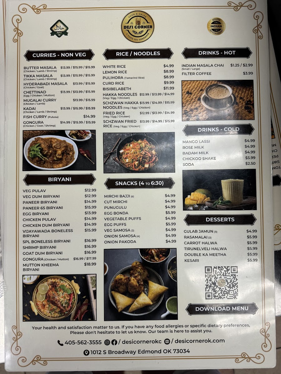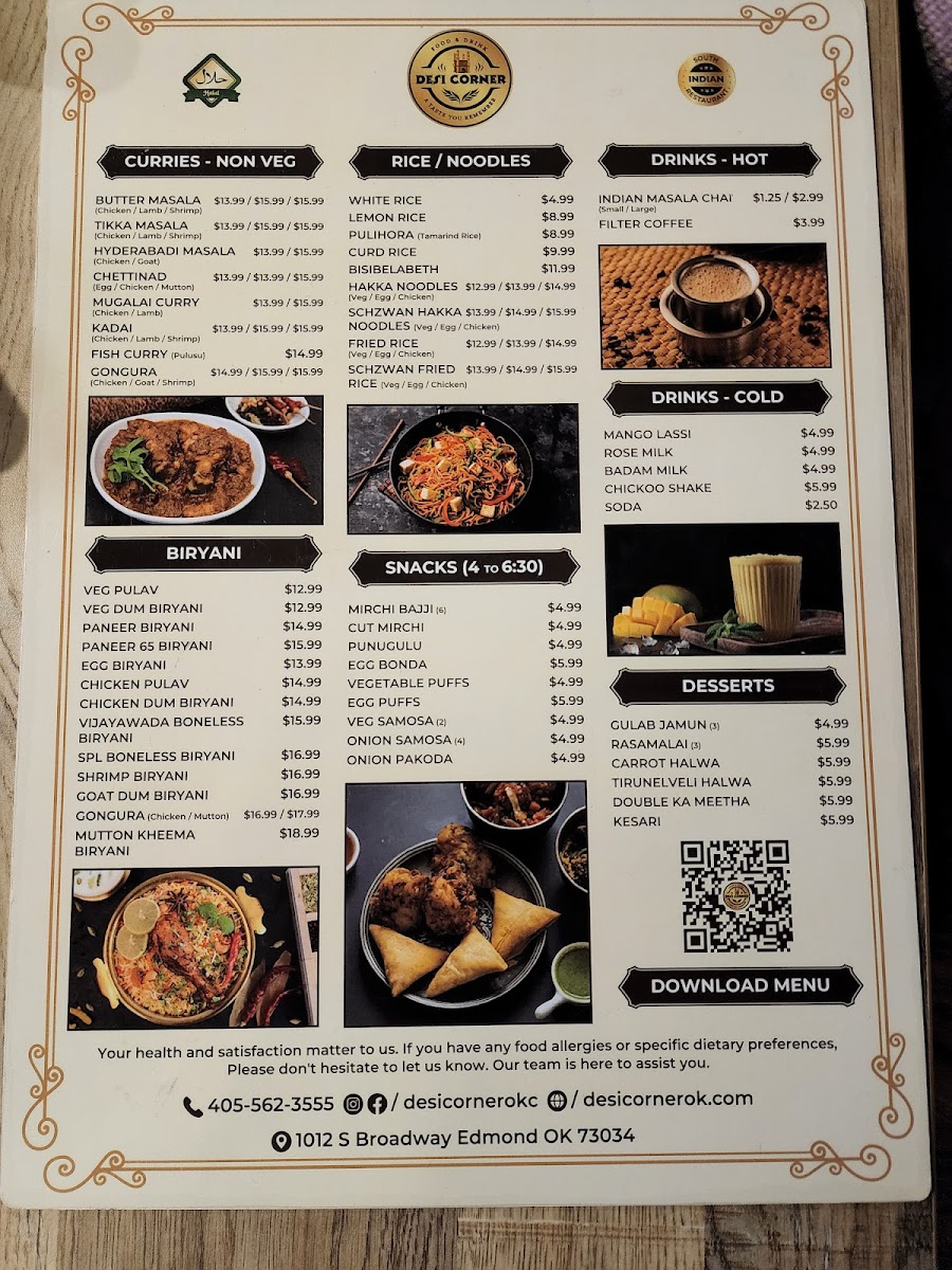 At Desi Corner Menu, located at 1012 S Broadway, Edmond, OK, you'll find a variety of flavorful dishes that transport you straight to the heart of traditional South Asian cuisine. Whether you're in the mood for spicy curries, tender kebabs, or warm, fluffy naan, this menu has something for everyone. Each dish is prepared with authentic ingredients, promising to delight your taste buds and introduce you to bold, vibrant flavors. From rich biryanis to savory vegetarian options, every bite offers a taste of something truly special. So, if you're looking for a satisfying meal that brings comfort and excitement to your plate, you’ll definitely want to explore the wide selection of delicious options waiting for you here.